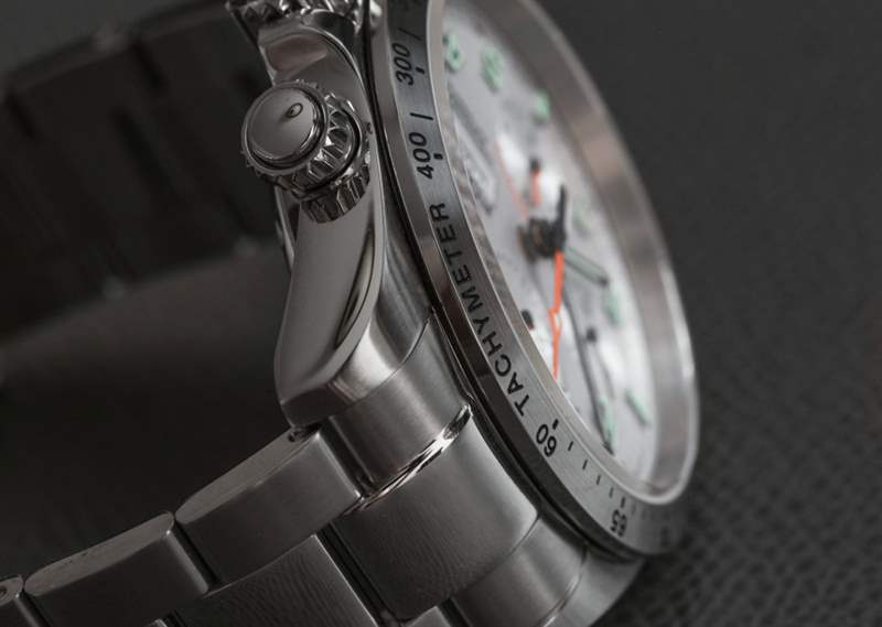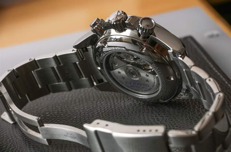 使用 Valjoux 7750 意味著表殼不會(huì)那么薄。盡管表耳較短,佩戴舒適度極佳,但 Classic Cosmonaut 的表殼厚度接近 15 毫米。旋入式按鈕和表冠可能有助于整體耐用性以及表殼的 100m 防水性。Fortis 在表盤上使用了一塊很棒的藍(lán)寶石水晶,盡管它有點(diǎn)彎曲,但不會(huì)受到任何眩光的影響(Fortis 聲稱兩側(cè)都有 AR 涂層,這對(duì)于這樣的手表是正確的)。表盤的清晰(無(wú)眩光)視圖證明了 Fortis Classic Cosmonauts Steel am 時(shí)計(jì)的工具手表特性。