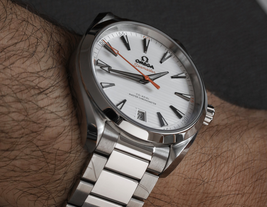 歐米茄長期以來一直希望 Aqua Terra 能夠與勞力士的一些類似的運動/正裝時計相媲美,從 Milgauss 到 Datejust。今天,Aqua Terra 更直接地成為 Milgauss 的競爭對手——盡管歐米茄的設計選擇顯然更加豐富,甚至有各種尺寸選擇(歐米茄網站上目前有 22 個版本)。Seamaster Aqua Terra 150M 男款有 38 毫米和 41 毫米兩種寬尺寸可供選擇 – 以及一系列表帶、表鏈、材料和表盤選項。這些選擇還可以帶來更運動和更休閑的穿著感覺,以及更保守的著裝風格系列。我選擇在配套的鋼表鏈上查看這款 41 毫米寬的 Aqua Terra 參考號 220.10.41.21.02.001 鋼制表鏈,因為我覺得它是該系列運動風格和時尚風格的完美結合。