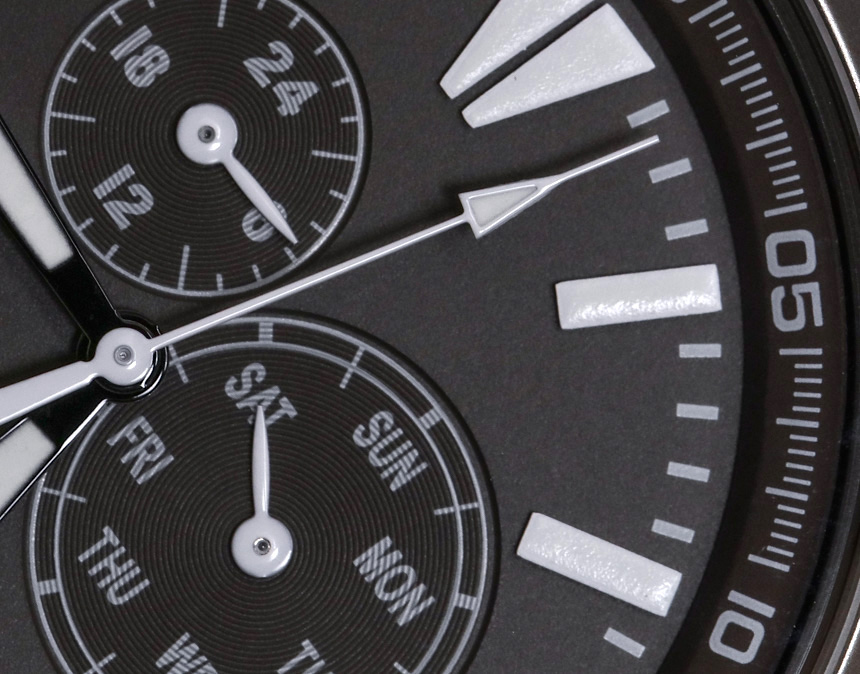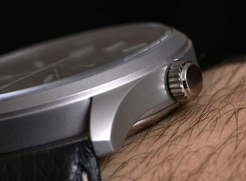 42 毫米寬的表殼在手腕上適度佩戴,就像野外手表一樣,12 毫米厚的噴砂鋼表殼讓您舒適地坐在手腕上。這款手表有一個旋入式表冠(奇怪地拋光而不是噴砂),這有助于提供 100 米的防水性能。平面水晶是礦物玻璃,并且似乎有一些受歡迎的 AR 涂層,這進一步有助于使其最佳易讀性。
