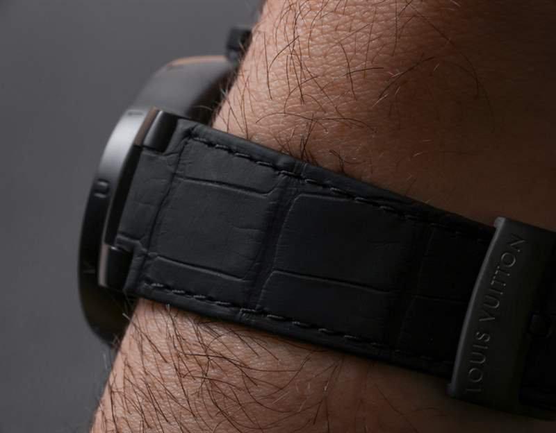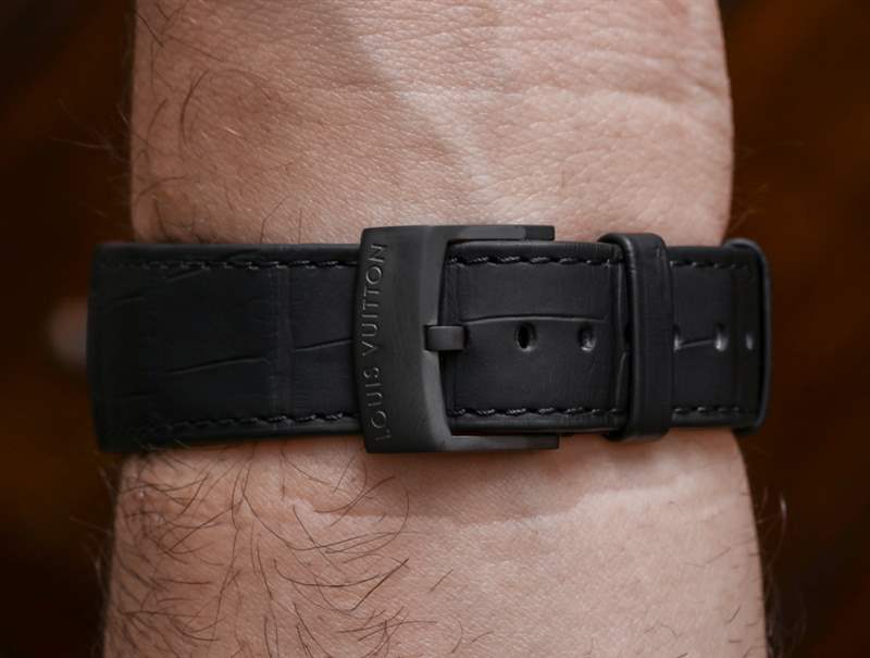 Tambour All Black Petite Seconde 內(nèi)部是一個(gè)基本的瑞士 ETA 機(jī)芯,我相信是 ETA 2895 自動(dòng)機(jī)芯。它是一款 4Hz 高級(jí)機(jī)芯,具有 42 小時(shí)動(dòng)力儲(chǔ)存。手表隨附的表帶是迷人的啞光黑色鱷魚(yú)皮,如果您要求,路易威登會(huì)向您出售各種其他表帶。