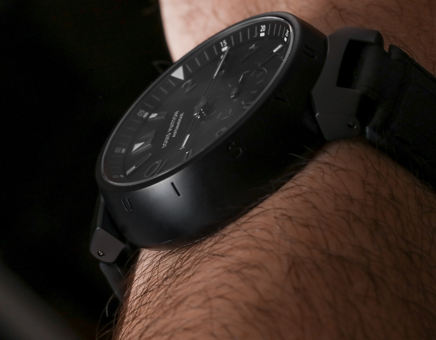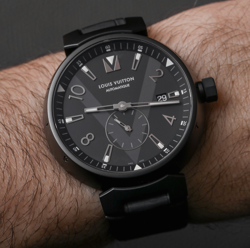 “全黑!”?每次我看到或聽(tīng)到這句話時(shí),我都會(huì)想象讓-克洛德·比弗(Jean-Claude Biver)睜大眼睛大聲宣告它,而他握緊的拳頭則充滿感情地拍在最近的桌子上。盡管路易威登不受比弗先生控制,但該人是路威酩軒 (Louis Vuitton Mo?t Hennessy) 的制表主管。顯然,他已經(jīng)產(chǎn)生了一些影響。路易威登 Tambour All Black Petite Second 和 Tambour All Black Chronographe 是第一款“全黑”顏色的路易威登時(shí)計(jì)。Jean-Claude Biver 不一定發(fā)明了全黑手表的概念,但他確實(shí)通過(guò)宇舶 Big Bang All Black 幫助普及了它。