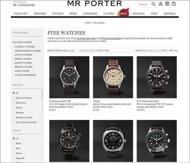 2015 年,Net-A-Porter 和 Mr. Porter 被歷峰集團部分出售給意大利時尚零售商 Yoox,后者在 Porter 品牌的兩家在線百貨商店中擁有 50% 的所有權和 75% 的決策權。波特先生是一家發展迅速的公司,手表是其增長最快的細分市場之一。Porter 先生開始回應其他注重時尚的男士對擁有更加精心策劃和咨詢性的購物環境的需求。這與女性購物者通常喜歡的更加開放和多樣化的購物和瀏覽體驗形成鮮明對比。