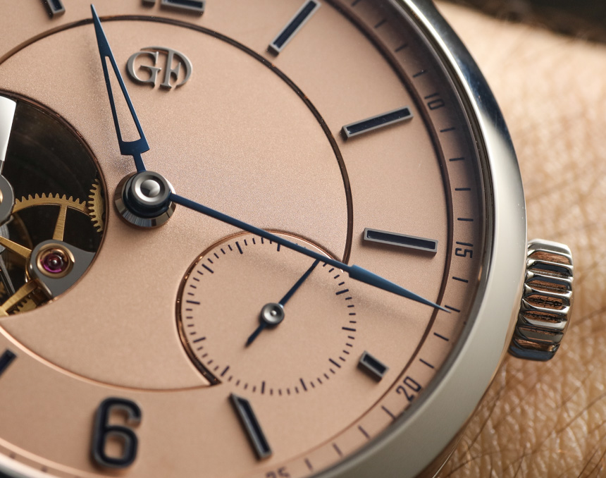 有人購買Greubel Forsey時計(當然是在他們買得起的條件下),主要是因為這個瑞士品牌公認的對精加工和視覺細節的奉獻。我有時將其稱為“表面處理”,因為高珀富斯的人們似乎投入了更多的時間和精力(與許多其他高端品牌相比)來確保進入他們的所有材料和零件的表面手表看起來盡可能“完美”。這一點在配備鮭魚色表盤的高珀富斯陀飛輪 24 秒視覺腕表中清晰可見,我們今天將親身體驗。