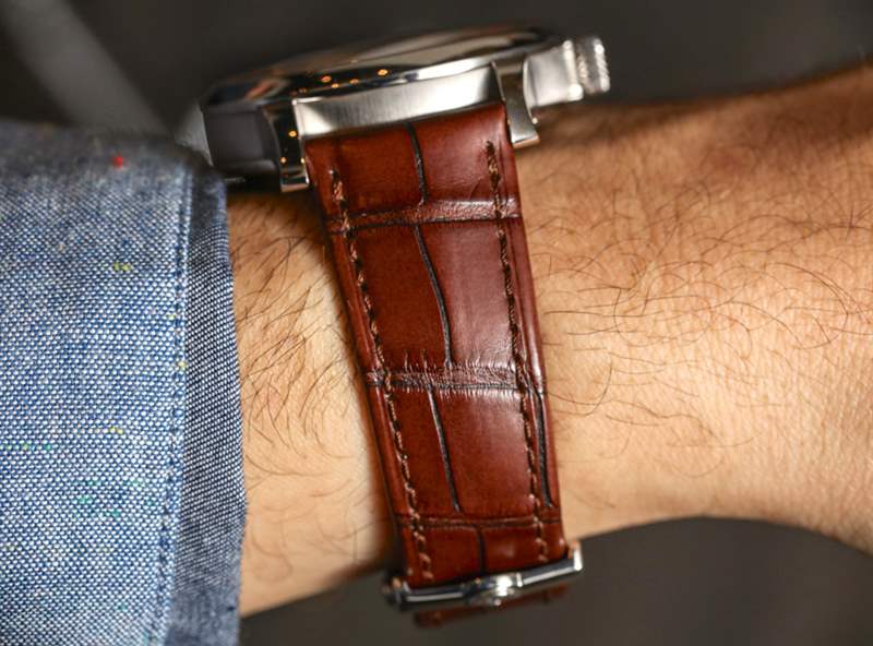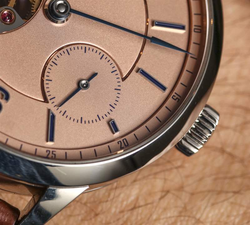 我不是特別喜歡吃魚,所以我往往不會總是在色調和肉之間產生積極的聯系——但話雖如此,這個金屬橙色粉紅色的表盤在這種顏色/材料配置下非常漂亮,特別是因為我沒想到它會在紙上起作用。鉑金外殼?藍色琺瑯白金時標?鮭魚色表盤和棕色鱷魚皮表帶?在您真正看到手表并意識到它做得很好之前,這實際上聽起來有點像混雜的顏色。