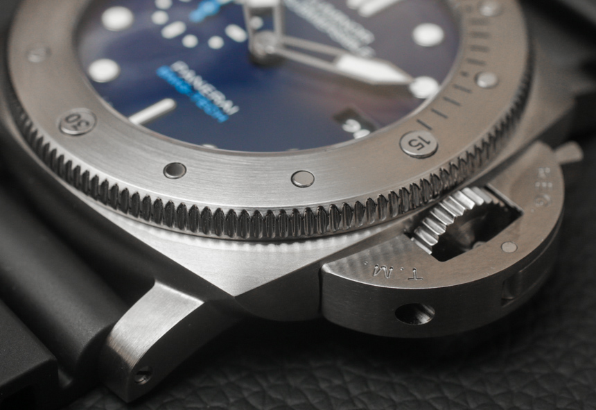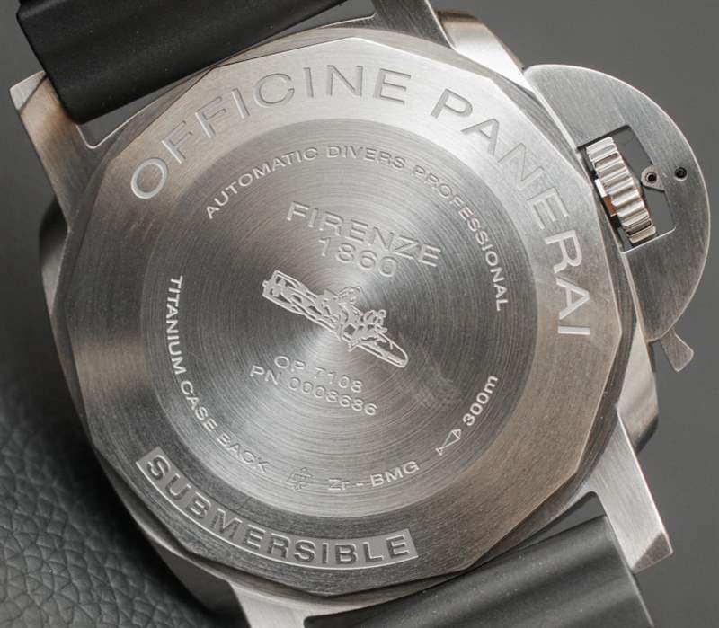 其他品牌使用各種類型的合金,例如表殼。我記得 Audemars Piguet 有時會使用一種他們稱之為“Cermet”(陶瓷金屬)的材料來制作表圈,也可能是整個表殼的材料。金屬陶瓷的優(yōu)點與 BMG-TECH 相似,因為它像陶瓷一樣堅韌,但具有金屬的視覺外觀。金屬陶瓷的顏色有點深,所以它讓我相信塊狀金屬玻璃對于這款沛納海 PAM 692 來說可能有點不同。表背是鈦,這也恰好是表殼中最多的部分細(xì)節(jié)。我的直覺告訴我,雖然大塊金屬玻璃是一種引人注目的材料,但它比大多數(shù)金屬更難加工(因此也更昂貴)。
