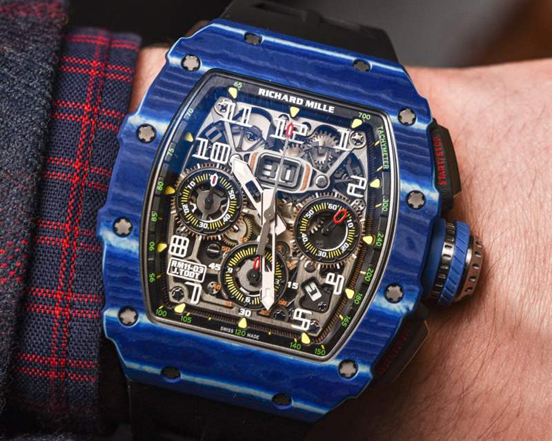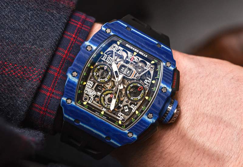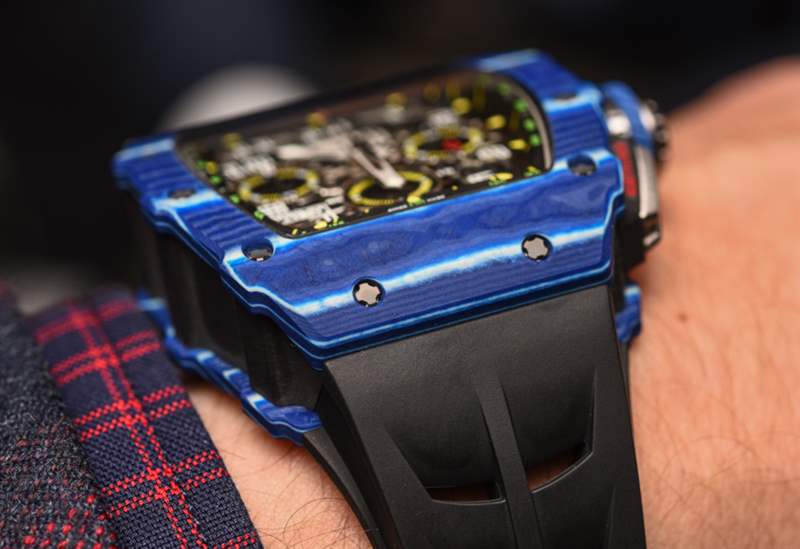 對于 Richard Mille 來說,這是一個嘗試顏色并進一步開發傳奇 RM 11 手表系列的絕佳機會,這有助于使該品牌在地圖上名聲大噪。在其先進的形式中,RM 11 具有相同的有用機芯,但采用石英 TPT 制成的奇特表殼,這是一種在瑞士生產并從高性能車輛借來的材料。這種材料是由數百片二氧化硅組成的致密層,每層只有幾微米厚。藍色只是裝飾性的,但如果沒有充滿活力的色彩,它就不會是 Richard Mille。廣告訊息廣告信息結束