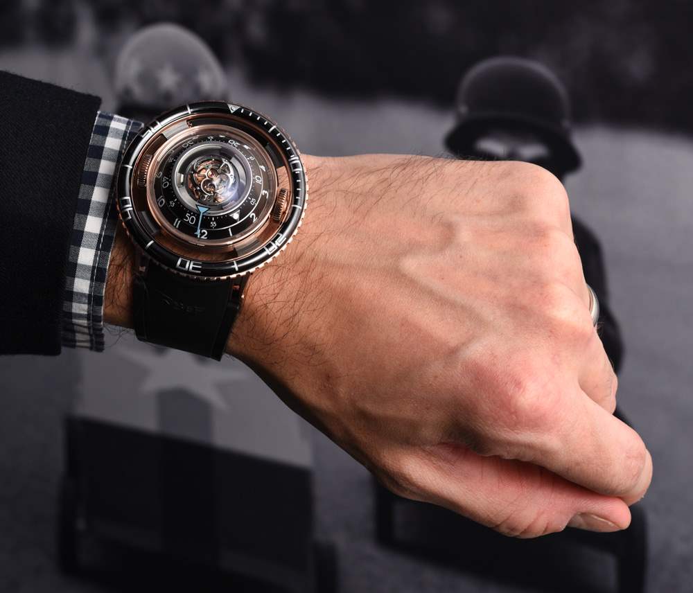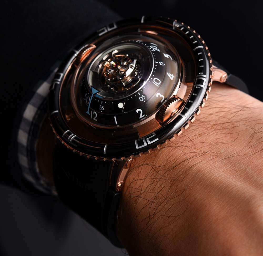 在 2017 年初撰寫有關(guān) MB&F HM7 Aquapod 的文章時(shí),我發(fā)現(xiàn)有趣的是(我當(dāng)時(shí)提到過)更多版本的 MB&F HM7 Aquapod 手表將以黃金生產(chǎn),而不是更“實(shí)惠”的鈦。畢竟,這與 MB&F 接近運(yùn)動(dòng)手表的程度差不多(我想您可能會(huì)對(duì)HM5提出同樣的看法),因此您會(huì)期望佩戴者重視鈦金屬之類的輕巧。然后我需要提醒自己,不,這確實(shí)是一款價(jià)值 10 萬美元的奢侈品——即使是鈦金屬表殼也是如此。盡管如此,這個(gè)令人敬畏的海洋生物看起來非常像潛水表……