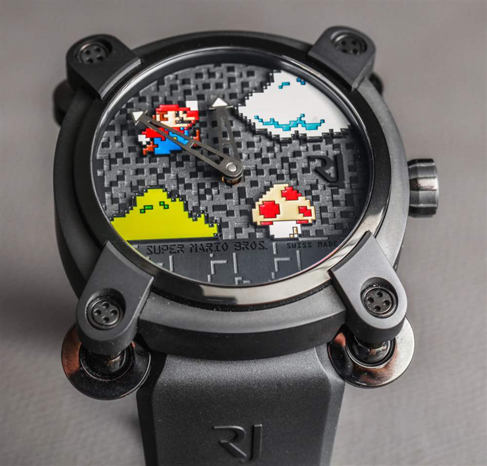 2015 年末,為了 2016 年的產品發布,Romain Jerome 與 Super Mario Bros 一起推出了(截至目前)該品牌最新的電子游戲手表。它于 2015 年首次亮相,以配合1985 年最初發布的任天堂娛樂系統 (NES) 電子游戲《超級馬里奧兄弟》的 30 周年。這可能是第一款電子游戲我曾經玩過,但直到大約兩年后接近 1980 年代后期,我才終于擁有了自己的任天堂娛樂系統視頻游戲機。