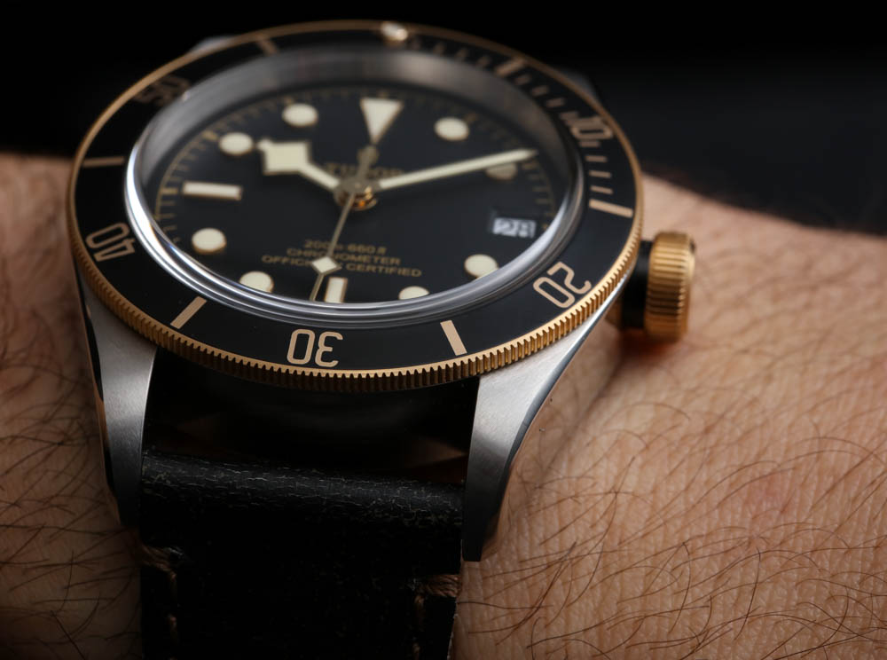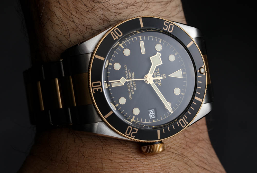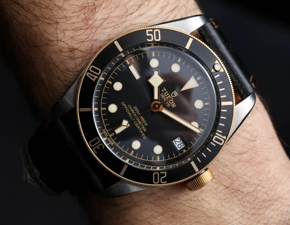 除了整理所有事實以了解手表之外,有些手表在您戴上之前您不會知道自己是否喜歡。“雙音”?Tudor?Heritage Black Bay S&G(鋼和金)79733N 就是這樣。欣賞手表真的是三件事的結合。首先是喜歡它的外觀。其次是喜歡佩戴時的感覺。第三是感覺價值值得要價的能力——尤其是與競爭對手相比時。走過 2017 年巴塞爾國際鐘表珠寶展 Tudor 展臺的櫥窗,我對“我也是”雙色調 Tudor Heritage Black Bay S&G 的印象并不多,它具有迷人但可以預見的帥氣鋼和金色外觀。然后,戴上它,我終于意識到,對我來說,它是瑞士都鐸王朝的明星。