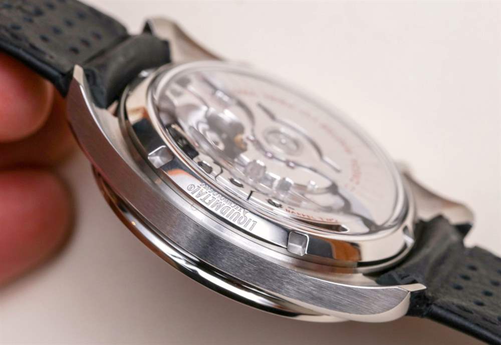 通過(guò)現(xiàn)在更圓潤(rùn)的藍(lán)寶石水晶底蓋可以看到 9900 系列自動(dòng)機(jī)芯。它以 4 赫茲(28,800 次/小時(shí))的頻率運(yùn)行,高于之前一些同軸擒縱 Omega 機(jī)芯的 3.5 赫茲。擒縱系統(tǒng)采用硅游絲,兩個(gè)主發(fā)條盒之間的動(dòng)力儲(chǔ)存為 60 小時(shí)。該機(jī)芯具有帶小秒盤的時(shí)間,以及一個(gè)完整的 12 小時(shí)計(jì)時(shí)碼表,計(jì)時(shí)碼表分針和時(shí)針位于同一個(gè)(右)子表盤中。6點(diǎn)鐘有日期。該機(jī)芯既獲得了 METAS 認(rèn)證,也獲得了 COSC 天文臺(tái)認(rèn)證,盡管前者的認(rèn)證使后者或多或少顯得多余。