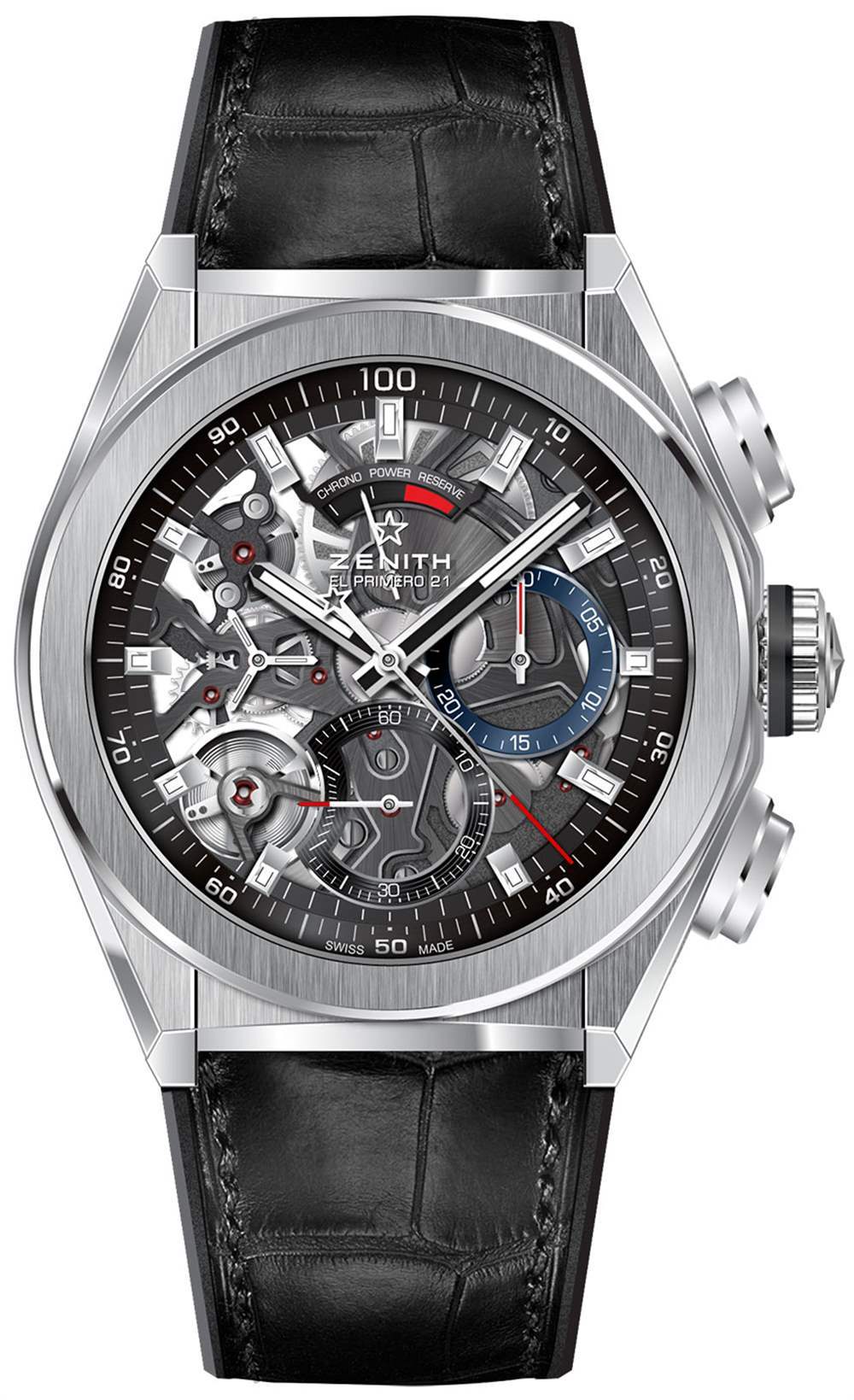 2017 年真力時 Defy El Primero 21 的三個版本包括帶有鏤空表盤的天然鈦金屬表殼(編號 95.9000.9004/78.R582),帶有鏤空表盤的黑色涂層鈦金屬表殼(編號 24.9000.9004/78. R582),以及非鏤空表盤和天然鈦金屬表殼型號(參考 95.9001.9004/01.R582)。后一種模型將是模型中更清醒、更經典的模型,但運動看起來很有趣,骨架化的現代視覺效果可能會吸引更多人。