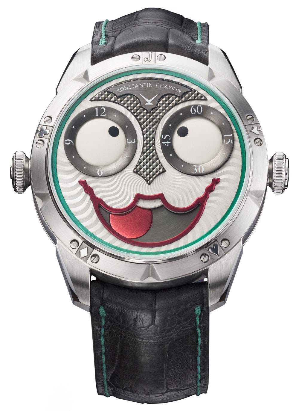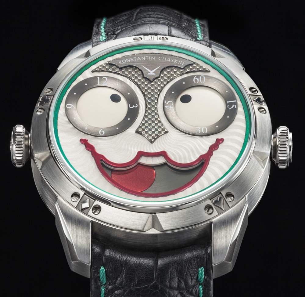 俄羅斯鐘表制造商康斯坦丁·柴金 (?Konstantin Chaykin?) 說話輕聲細語,非常聰明,他的作品總是能引起我的興趣。2017 年,他最新的手表是限量版,全是關于奇思妙想(和蝙蝠俠惡棍)的。Konstantin Chaykin Joker 是對著名的同名蝙蝠俠惡棍的一個典型且相對友好的致敬。這款腕表的意義不僅在于提醒腕表收藏家小丑角色,還在于使用他的主題來展示一款具有約 20,000 種不同“面部表情”的“面部”的時計。