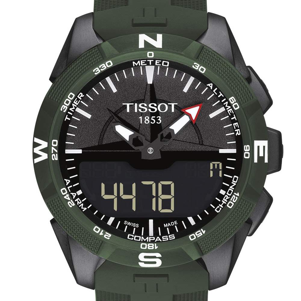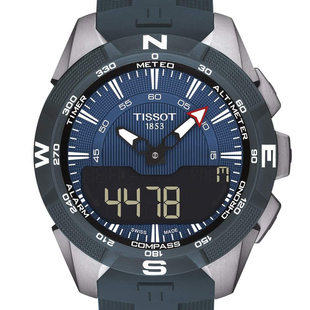 如果您不熟悉天梭 T-Touch 系列,這個概念非常簡潔。基本理念是通過按壓藍寶石水晶上的不同位置來使用功能。因此,如果您在表盤外圍看到(例如)“高度計”,您首先按下表冠按鈕,然后將手指按在水晶的那個區域,手表進入高度計模式,指針和部分數字屏幕協同工作以指示當前高度。作為一款“三重傳感器”手表,T-Touch Expert Solar II 擁有氣壓計、高度計和指南針(后者是目前為止最有趣的)。天梭聲稱 T-Touch Expert Solar II 有 20 種功能,從多個時區和計時碼表(包括單圈和帆船賽)到萬年歷和兩個不同的警報。