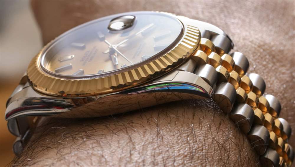 讓追蹤勞力士日志型更復雜的是表盤、表圈和表鏈選項的多樣性。盡管勞力士首次推出 Datejust 41 時僅采用雙色(他們稱之為“Rolesor”)變體,而不僅僅是鋼,但您可以選擇鋼和黃金或鋼和永恒玫瑰金,在兩個表鏈選項之間進行選擇(Jubilee 或 Oyster),以及兩種金色變體之間的總共十個表盤選項,最后但并非最不重要的是,選擇拋光的“扁平”表圈或凹槽表圈,如圖所示。我只能說,如果您對勞力士 Datejust 41 感興趣,請務必做好功課并確定適合您的特定變體。