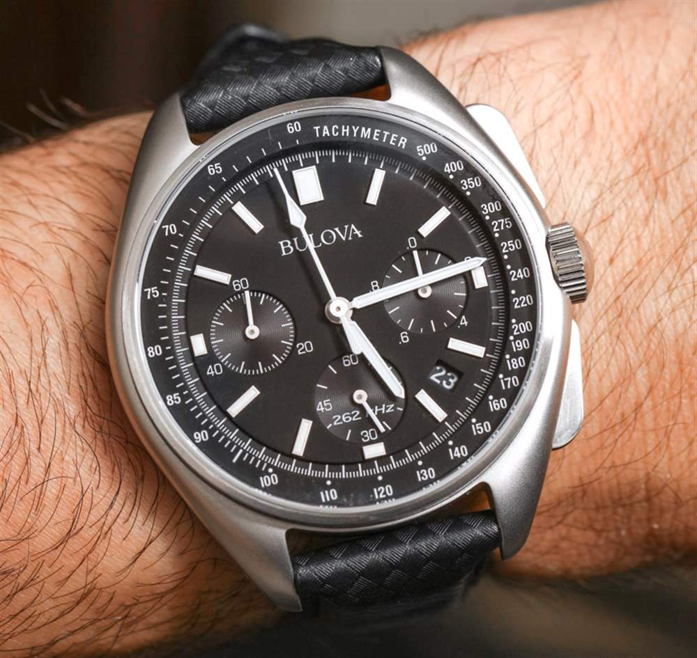 Bulova 歸日本西鐵城集團所有,雖然西鐵城手表不共享它們的機芯,但您可以確保 Bulova 特別版月球計時手表內(nèi)部的“高性能”石英機芯質(zhì)量上乘。查看手表的表盤,您會在小秒盤上看到一個“262 kHz”的名稱標簽。對于那些不熟悉寶路華時計系列的人來說,這應該是第一次暗示手表內(nèi)部有一些特別之處。