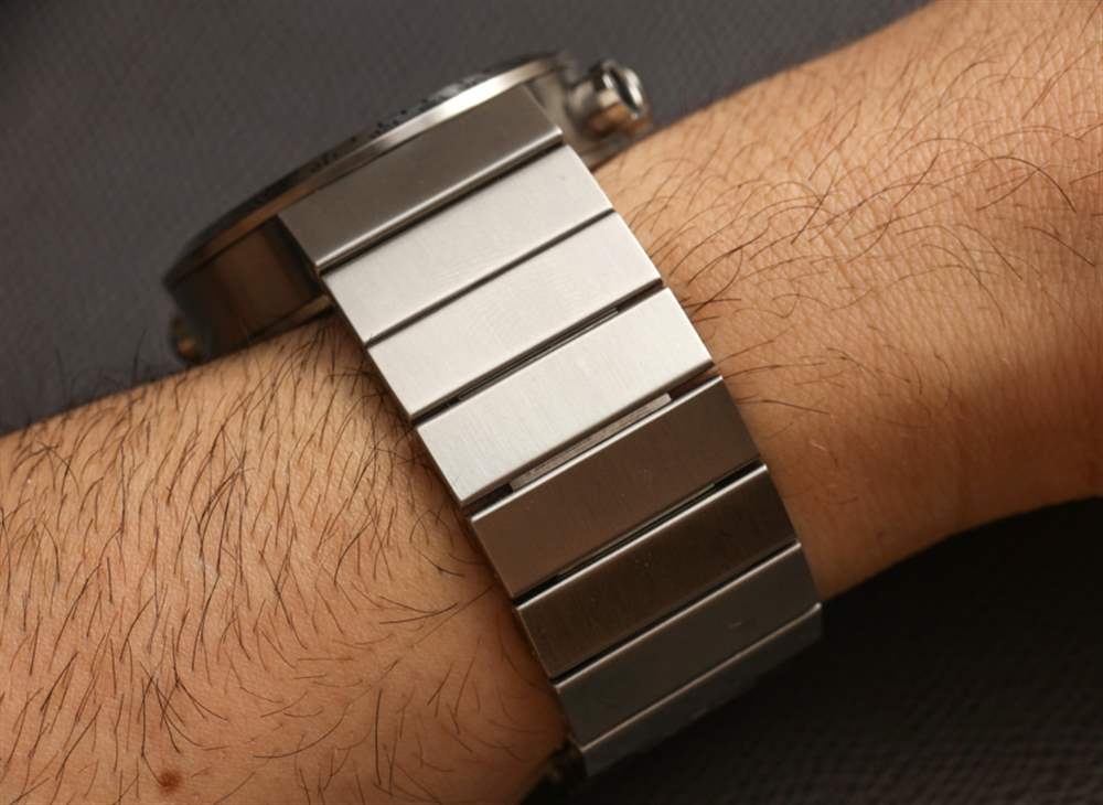 正如我所說(shuō),鋼制表殼寬 43 毫米,防水深度達(dá) 100 米。43 毫米在現(xiàn)代男士手表的方案中并不算多,但考慮到大約 16 毫米厚的表殼和寬大的表耳結(jié)構(gòu),CGK205 確實(shí)有點(diǎn)偏大。您還擁有一個(gè)精美的 AR 涂層圓頂藍(lán)寶石水晶(CGK203 有一個(gè)扁平水晶),這增加了鐘表的更現(xiàn)代的吸引力。請(qǐng)注意,表殼上的三個(gè)按鈕和表冠中的每一個(gè)都使用了黑色縞瑪瑙凸圓形水晶。他們也碰巧都被搞砸了。