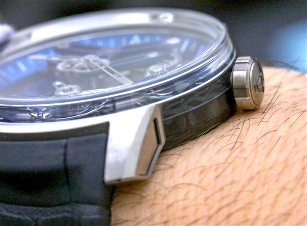 機芯以 3 赫茲(21,600 次/小時)的頻率運行,動力儲存長達 90 小時。機芯厚度也只有 5.78 毫米,從各個角度來看確實非常吸引人。也許更重要的是易讀性,對于這樣的鏤空表盤來說,這實際上是相當不錯的,并且傾斜的章環(huán)上的刻度用于進一步的可讀性。