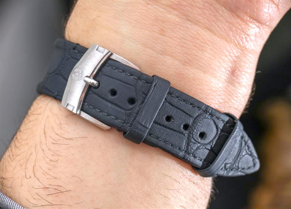 在手腕上,碳纖維、藍寶石水晶和鈦金屬表殼既輕巧又合身,佩戴舒適。附在表殼上的是一條黑色“隱形”鱷魚皮表帶,帶有鈦扣。整個設計感覺就像是現(xiàn)代和傳統(tǒng)元素的成功結合,具有許多視覺效果,但具有永恒的吸引力。我很樂意每天佩戴其中一款 Angelus U20 Ultra-Skeleton Tourbillon 手表,如果只是為了接受佩戴它可能會受到的所有關注。這是我不介意觀看書呆子對話的手表類型。