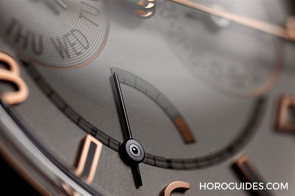 搭載具有日內瓦印記的2475 SC/2自動上錬機芯,具備停秒裝置,表背搭配22K金質鏤空自動盤不過搭配陶瓷滾珠軸承,可讓機芯更為耐用。3點鐘為日期,6點鐘為動力儲存顯示,9點鐘為星期顯示。