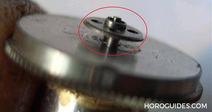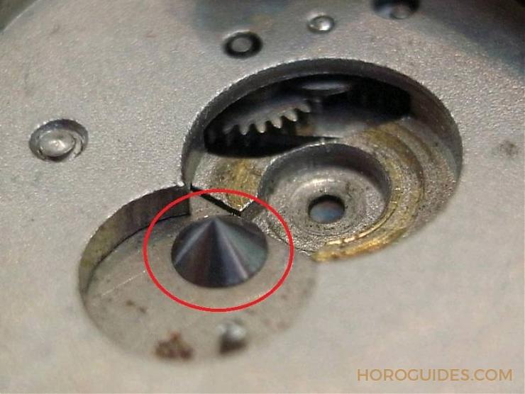 后蓋內部的結構,以齒輪的左右位移來調校時間或停秒校時。