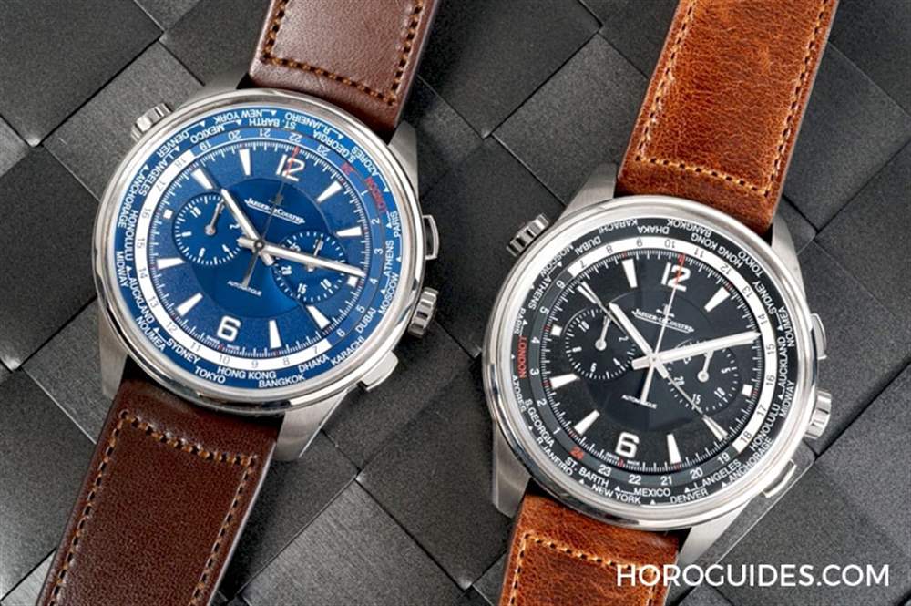 結合積家自制計時與實用的世界時區,設有兩枚計時按把,并在10點位置增設用于設定城市圓盤的表冠,一共24個時區,搭配44mm的尺寸也是系列中目前最大的尺寸,但搭配鈦金屬表殼,更輕又不容易過敏,佩戴舒適。