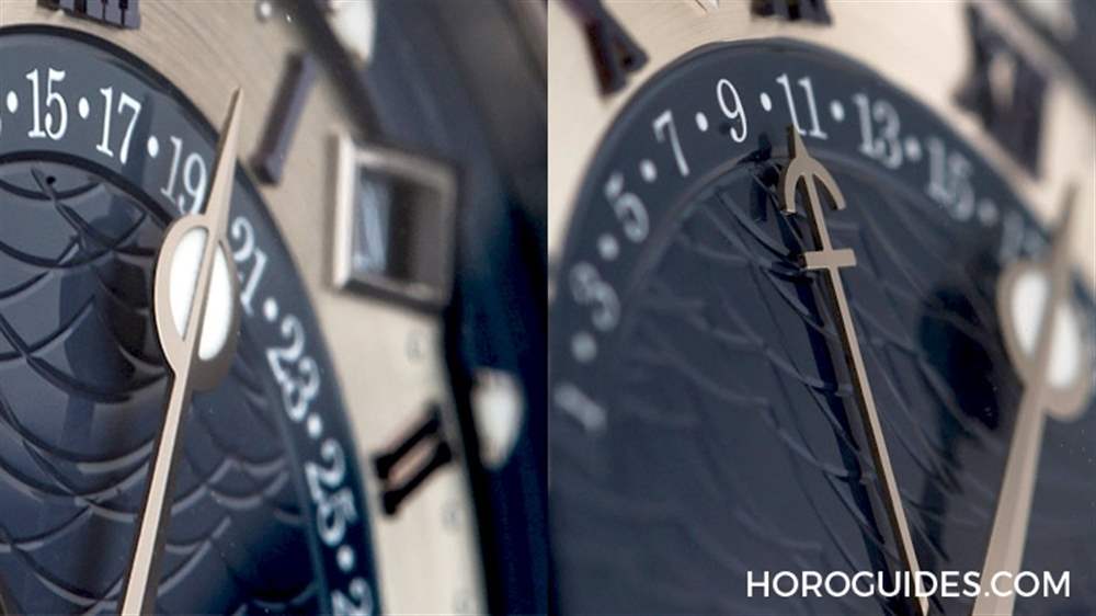 有做出時間等式功能的品牌不外乎愛彼、江詩丹頓還有包括寶璣這些一線大廠,而且這些有時間等式功能的腕表,都是顯示二者的時間差,例如-16或是+14,必須自己對照現(xiàn)在的時間換算,但是寶璣5887厲害的地方就在于,它是直接以另一根指針來指示真太陽時,不用掰手指頭算個半天。