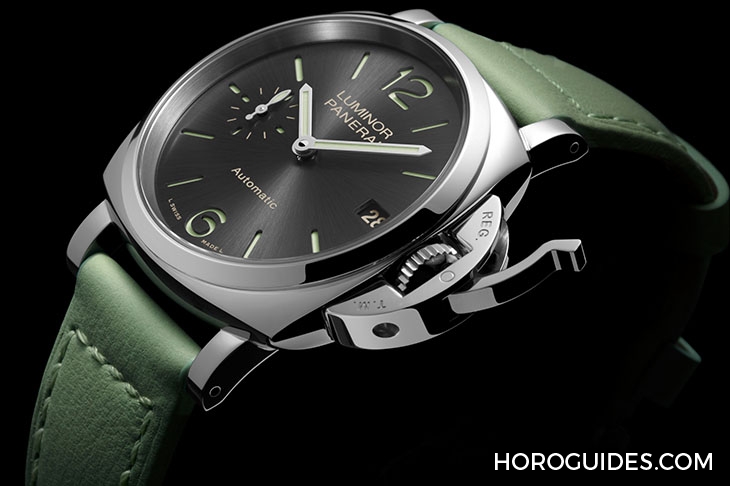 沛納海今年主打Luminor Due系列,與招牌系列Luminor最大差異在于厚度薄了40%,涵蓋38、42到45mm,此為42mm的PAM00906。