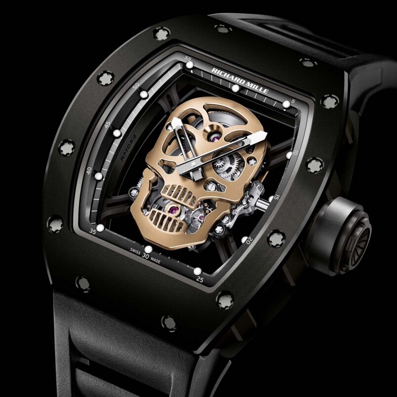 RM 52-01 Tourbillon Skull Nano-Ceramic賣價達五百多萬,貴,是有原因的,首先,只是限量30枚,但都不是最重點,而是因為這枚腕表,是一枚陀飛輪腕表之余,其機芯之上更用上5N紅金手雕鏤空骷髏頭。而表殼當然都是重點,因為用上了奈米陶瓷復合材料,是當年2013年業界首見的物料,除了能保持硬度之外,更可以帶來更輕的效果,同時更耐刮。