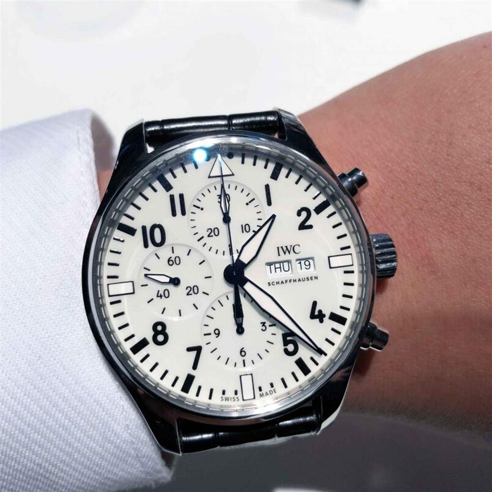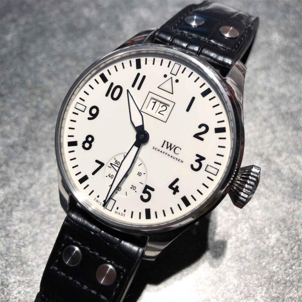 另一款是我一見愛上的IWC Big Pilot’s Big Date 「150周年」特別版,最喜歡的是這白色漆面的版本,黑色時(shí)標(biāo)在表盤上猶其突出!而由于是大日期視窗,所以表盤比較簡潔,也令表盤更搶眼,而其實(shí)今回是IWC首次將Big Date放入Big Pilot’s 系列,所以特別有新鮮感,如果是一直都恨買Big Pilot’s而又未買,這款絕對要留意,因?yàn)橐仓皇窍蘖?00枚!