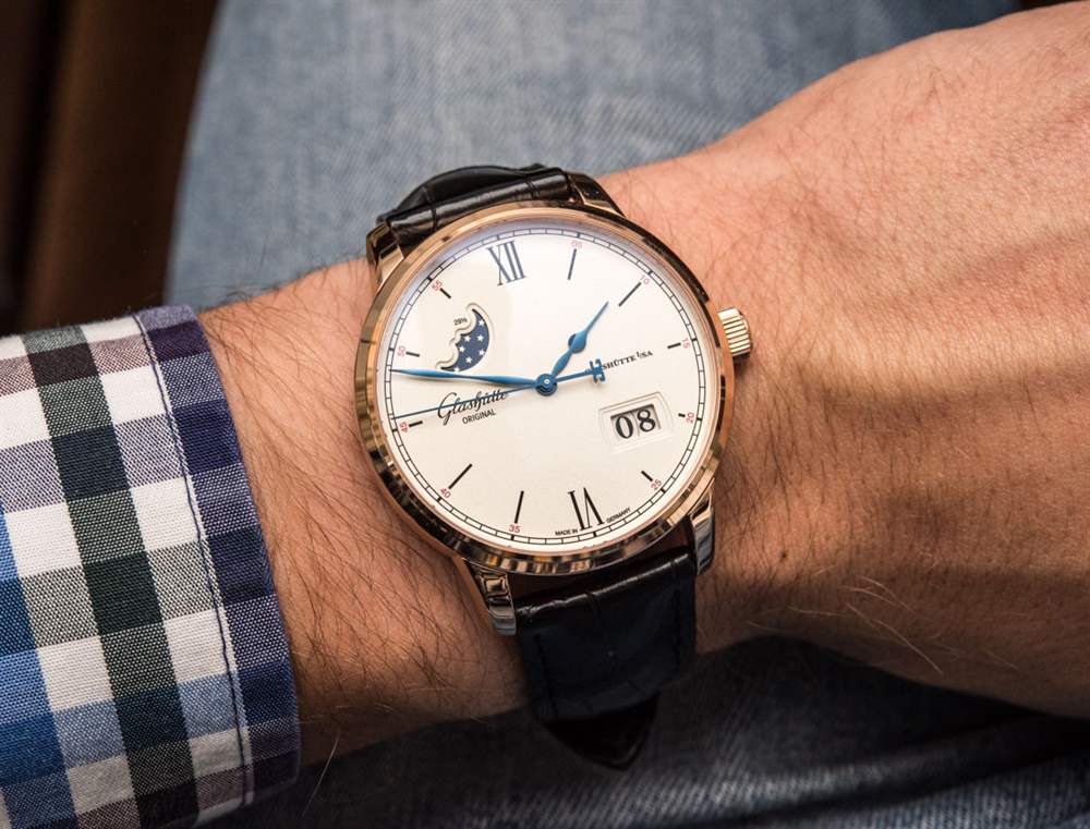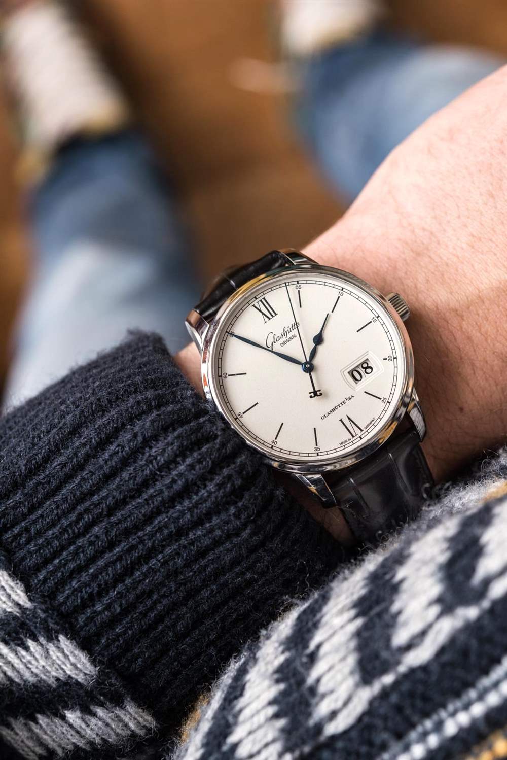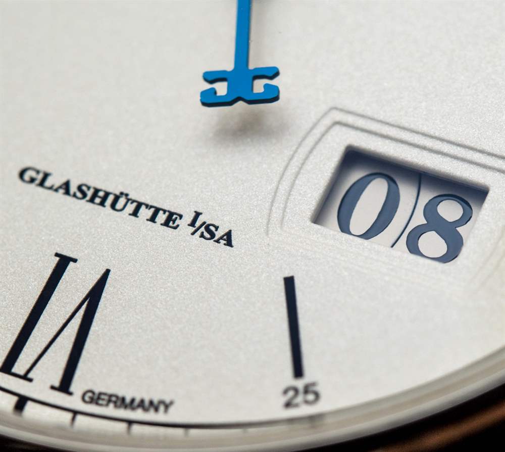 其他受歡迎的設計元素是對表盤設計的微調,略顯精致,非常帥氣。藍鋼指針尺寸完美,一切清晰易讀。部分原因是格拉蘇蒂原創在幾年前收購了他們的 Pforzheim 表盤供應商,并嚴格控制表盤生產(包括日期輪等),以最大限度地提高表盤的美觀和易讀性。請注意紅金表款表盤上的紅色點綴,營造出漂亮、略帶運動感的個性。對我來說,這個元素提醒我,這些不僅僅是漂亮的手表,也是德國手表傳統中的工具。