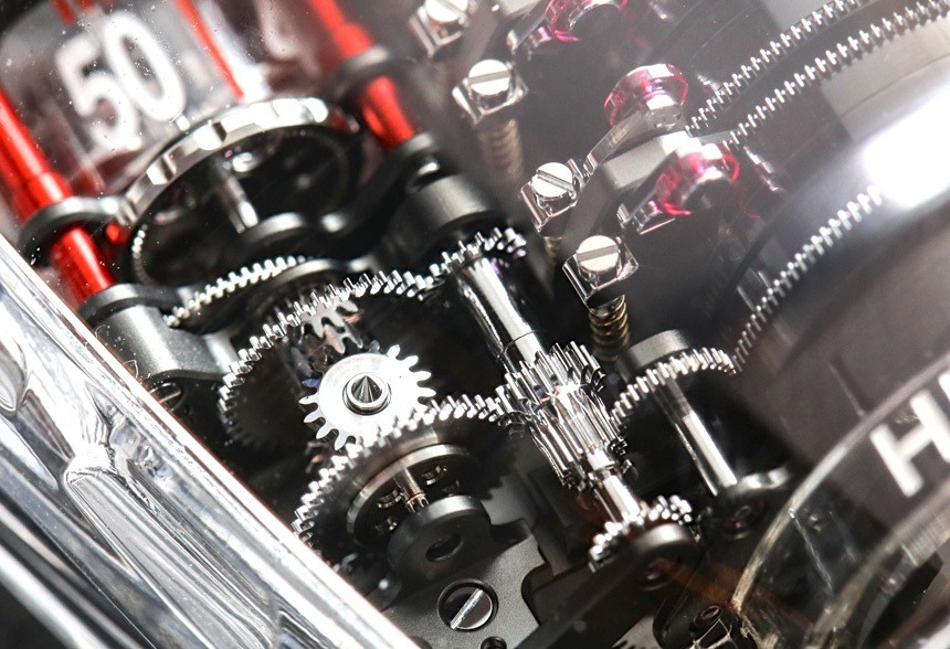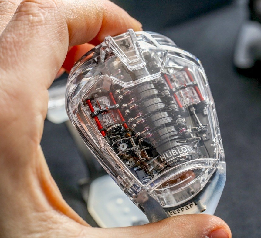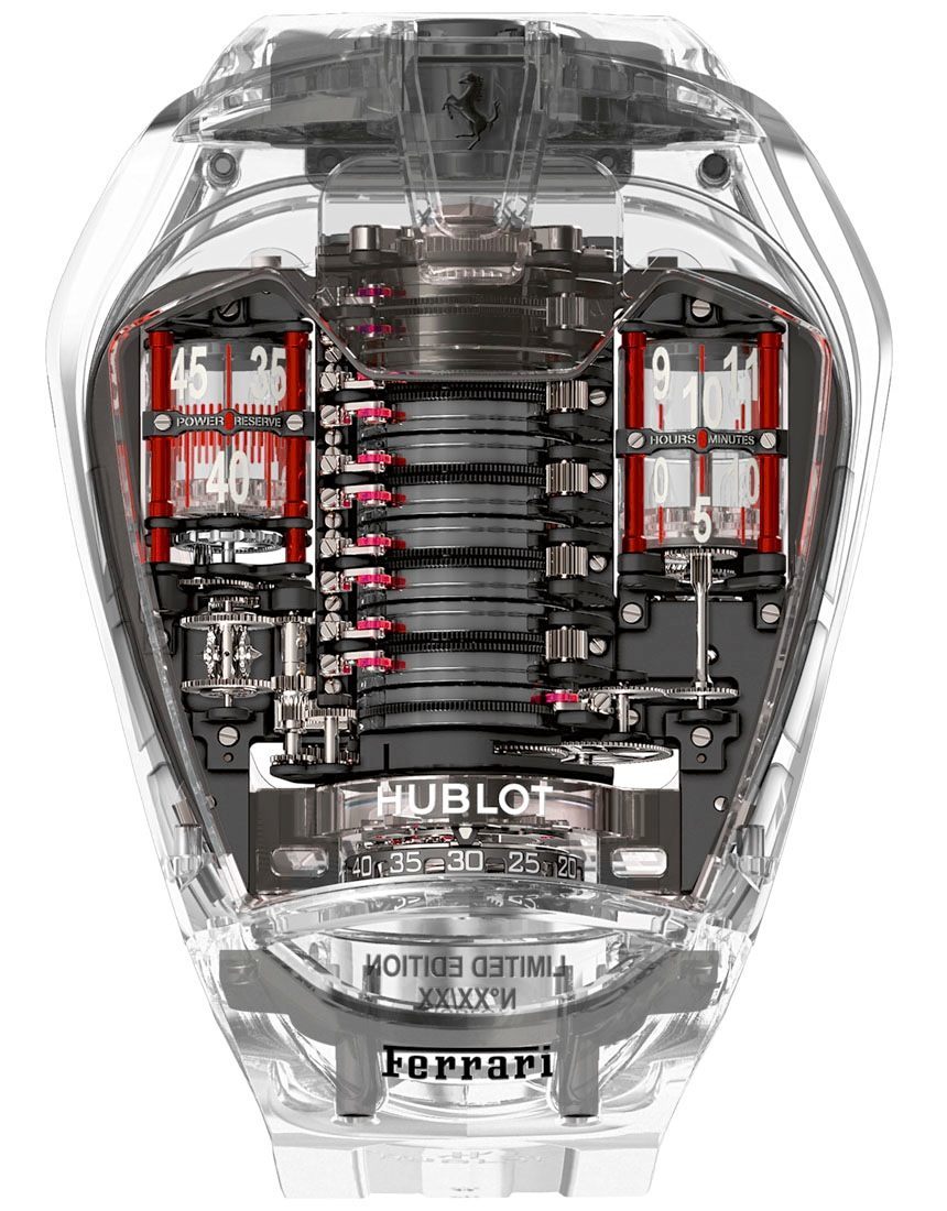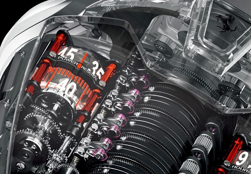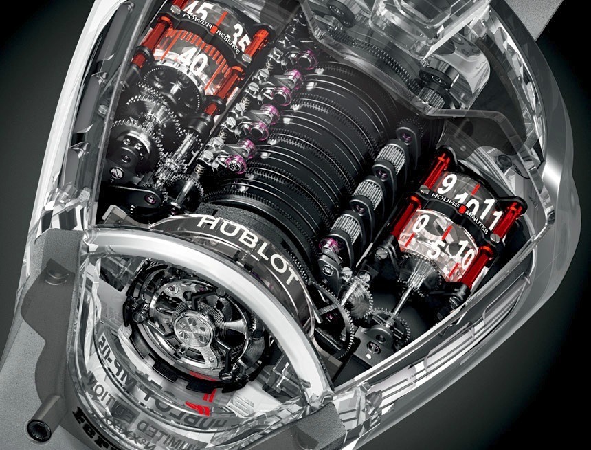 機(jī)芯酷炫得令人窒息,在藍(lán)寶石水晶表殼內(nèi),它比以往任何時(shí)候都更加醒目。該機(jī)芯由 637 個(gè)零件和 108 顆寶石制成,以 3 赫茲(21,600 次/小時(shí))的頻率運(yùn)行,并以秒指示時(shí)間,此外它還擁有旋轉(zhuǎn)鼓上的動(dòng)力儲(chǔ)存指示器。不,Hublot MP-05 LaFerrari 手表從來都不是理想的易讀性,但它完成了工作。更重要的是,整個(gè)表殼看起來就像一個(gè)法拉利發(fā)動(dòng)機(jī)艙,里面的機(jī)械機(jī)芯當(dāng)然代表著發(fā)動(dòng)機(jī)。廣告留言廣告信息結(jié)束