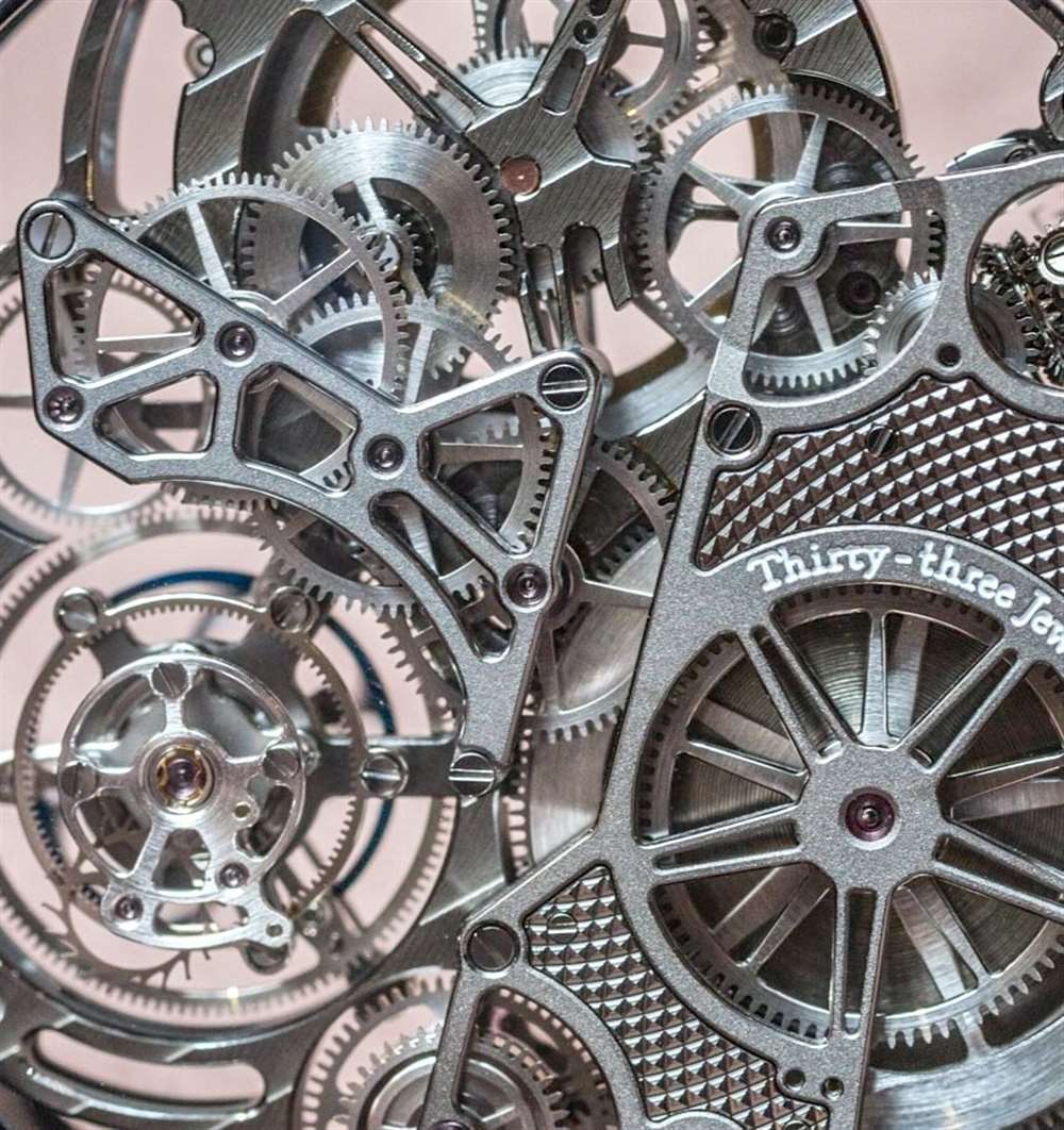 機芯結構和鏤空是純粹的“高級鐘表學”,具有一系列精美而現代的裝飾細節和修飾。我知道 Bovet 時計的設計并不適合所有人,但我仍然相信大多數鐘表愛好者都能輕松地支持這些手表的技術和技巧。此外,如此顯眼的大型飛行陀飛輪腕表以及涂有明亮 SuperLumiNova 夜光涂層的指針(請注意,在這些原型型號上,指針是手繪的,因此流明看起來不均勻)的頻率有多高。