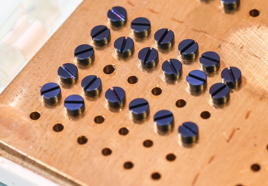 需要四十分鐘熟練的制表師時間才能在幾個螺絲表面上應(yīng)用正確的平面鏡面拋光。這些小巧但非常必要的零件最初是一種特別訂購的鋼合金,然后實際上是 CNC 機(jī)器切割以產(chǎn)生每個新螺釘?shù)摹霸肌毙螤睢H在進(jìn)行任何精加工之前,每個螺絲的材料和生產(chǎn)成本 Lang & Heyne 的成本約為每個螺絲 1 歐元。實際上,這些都是在 UWD 生產(chǎn)的——它目前也是 Lang & Heyne 的“姊妹公司”。然后通過首先進(jìn)行質(zhì)量控制檢查,然后進(jìn)行仔細(xì)的平面和角度拋光,對一歐元的螺絲進(jìn)行改造。Lang & Heyne 在內(nèi)部生產(chǎn)一些螺絲尺寸,然后將其中一些進(jìn)行火焰藍(lán)處理以增加顏色和美學(xué)設(shè)計。