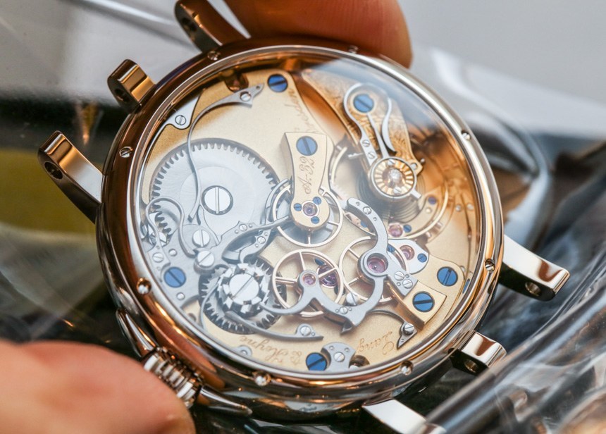 最終看到“完整螺釘”的精確形狀和表面處理需要多長時間?大約 40 分鐘,Marco Lang 以非常實事求是的方式說道。這不是生產(chǎn)或質(zhì)量控制,而只是拋光。最終結(jié)果看起來棒極了,不熟悉高級手表機(jī)芯精加工的真正價值的人可以輕松地跳過螺絲等小東西,假設(shè)一些花哨的高科技機(jī)器像工廠小部件一樣彈出它們。事實是,當(dāng)你購買一塊嚴(yán)肅的手工完成的手表(尤其是德國人的手表)時,即使是螺絲也會像過度保護(hù)的父母一樣受到關(guān)注。話又說回來,如果您為傳統(tǒng)鐘表支付了奢侈的價格,您希望每個處理它的人都表現(xiàn)得像一個過度保護(hù)的父母。