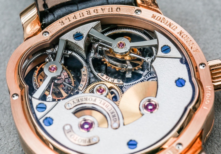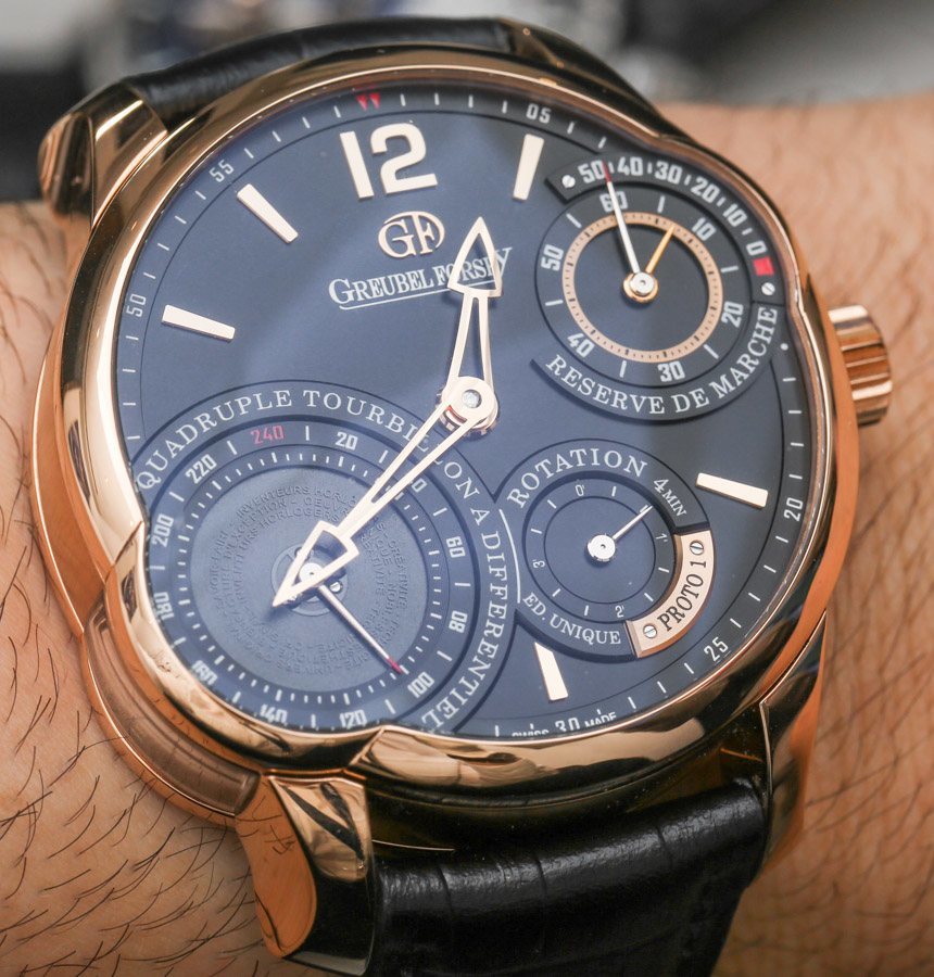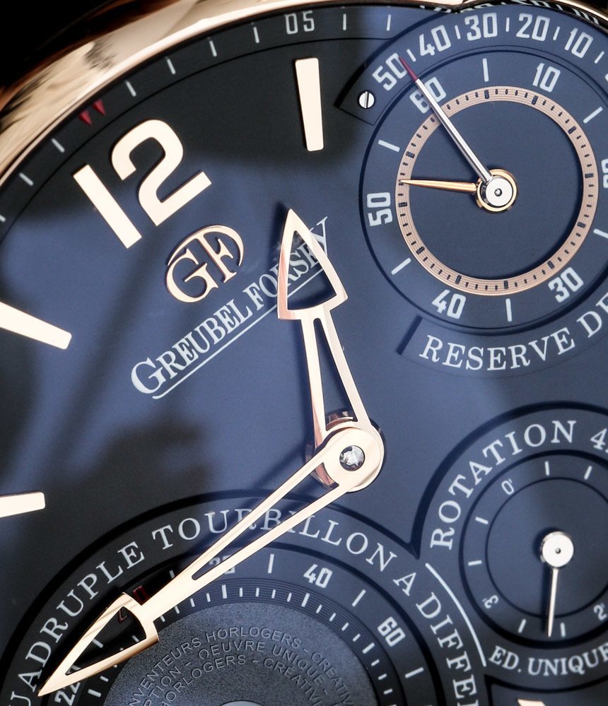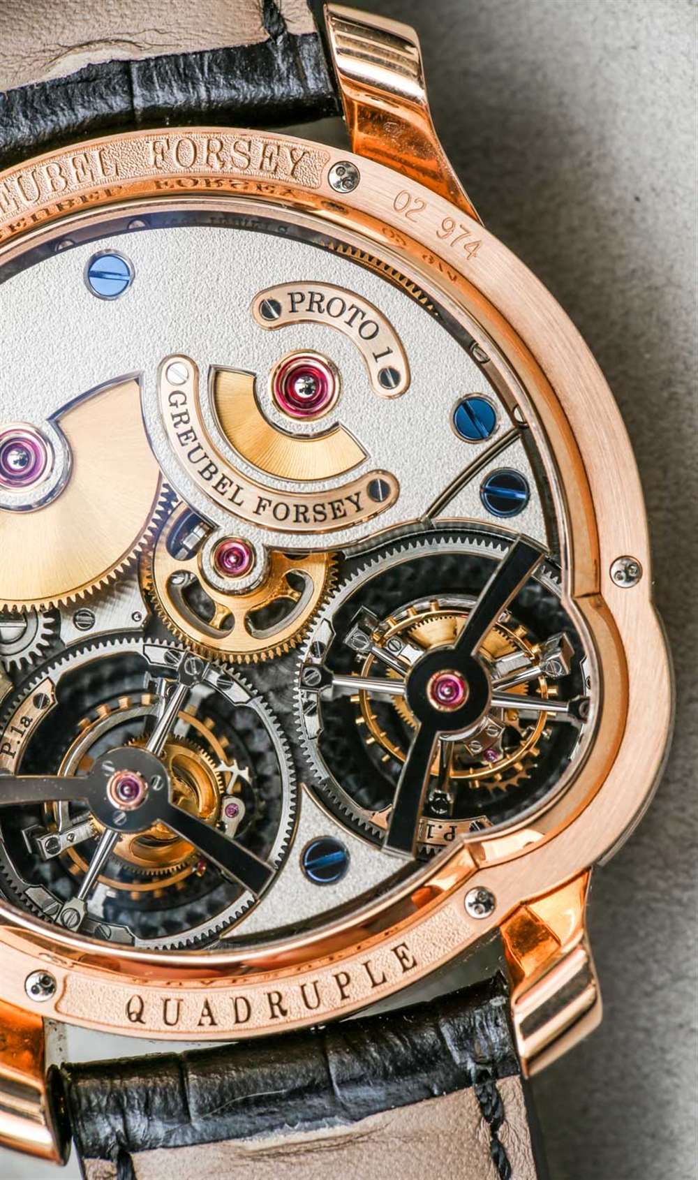 高珀富斯 (Greubel Forsey) 自己對陀飛輪裝置日益普及的反應(yīng)是制造其他人無法(或不愿)制造的帶陀飛輪的時計。例如,Greubel Forsey Quadruple Tourbillon 的機(jī)芯包含兩個陀飛輪,每個陀飛輪包含較小的陀飛輪。因此,該型號可以聲稱擁有四個陀飛輪——實(shí)際上每個陀飛輪在陀飛輪方案中都有點(diǎn)獨(dú)特——這是其他陀飛輪手表制造商不太可能提供的。
