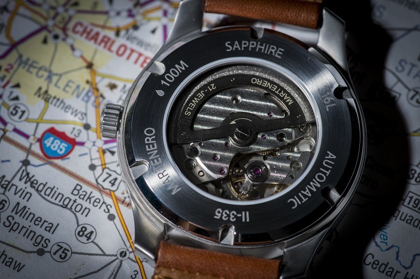 雖然這款機(jī)芯不具備其瑞士同類產(chǎn)品的準(zhǔn)確性或潛在可靠性,但考慮到價(jià)格點(diǎn)和手表的所有其他積極方面,我認(rèn)為它不會(huì)對(duì)整體包裝產(chǎn)生太大影響。前鏡的防反光涂層可以改進(jìn)一點(diǎn),但在日常佩戴中并沒有影響到我,在購(gòu)買手表時(shí)也從來(lái)不是我的一個(gè)大問題。表殼的四舍五入是一個(gè)引人注目的旋入式表冠,中間刻有“M”(非常適合名叫馬克的人),使手表能夠達(dá)到 100 米的有效防水等級(jí)。