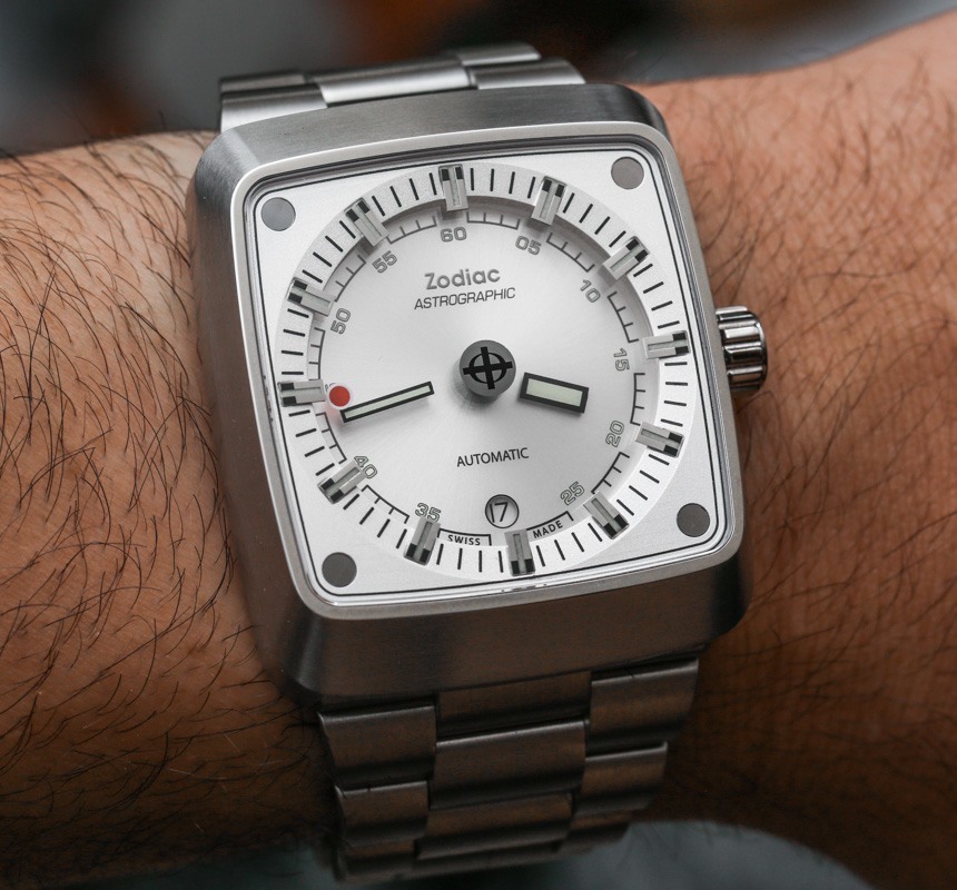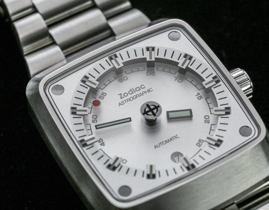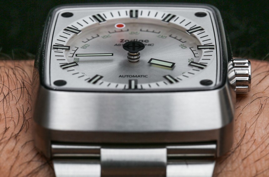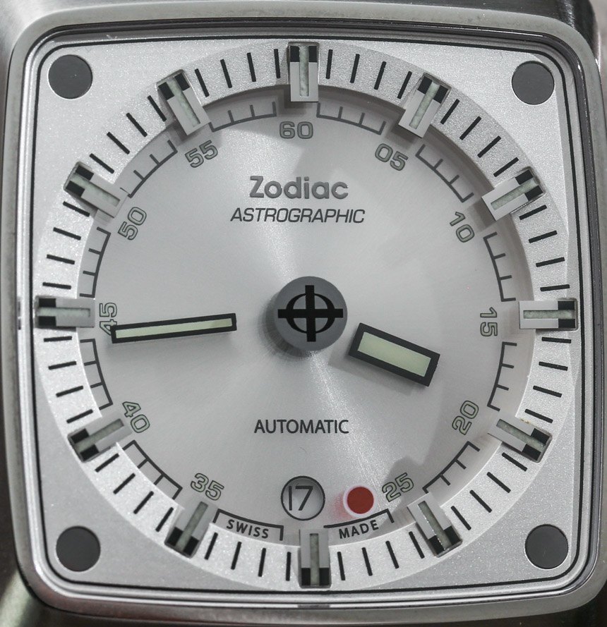 為了創造表盤效果,手表的表面略微向下,外表盤位于凸起的平面上。盡管表殼的形狀更有棱角,但表盤是圓形的。表盤的設計也是對稱的,日期窗口位于 6 點鐘位置的小時指示器上方。憑借易讀性和一些受歡迎的復古運動風格,我必須給 Zodiac Astrographic 的表盤打高分,因為它非常成功地實現了它的目標。如果您想要更獨特的東西,還有其他風格的表盤顏色,例如灰色以及 Astrographic ref 可愛的藍色和紅色。ZO6603。