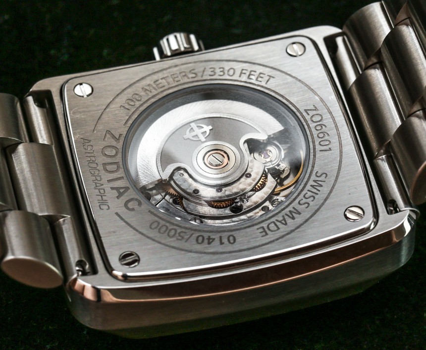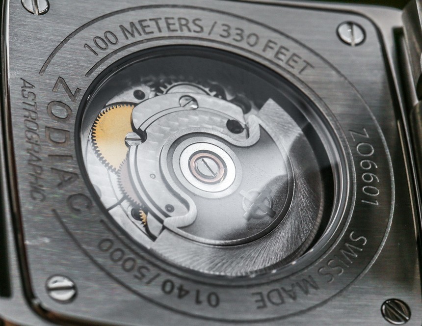 該表殼防水深度達 100 米,還配有展覽底蓋,可以看到內部的自動機械機芯。該機芯實際上是由 Fossil 集團生產的,該集團在瑞士擁有一家機芯制造廠。該機芯被指定為 Swiss Made STP 1-11,我相信它在功能上等同于 ETA 2824,在 4Hz 下具有約 42 小時的動力儲存。為了錢,我對機芯裝飾的質量印象更加深刻,其中包括漂亮的機加工珍珠拋光。正如我所說,對于 Zodiac Astrographic 的超值價格,這是一款非常合適的自動機芯,我認為 Zodiac 做出了正確的決定,讓您從表殼后部查看它。