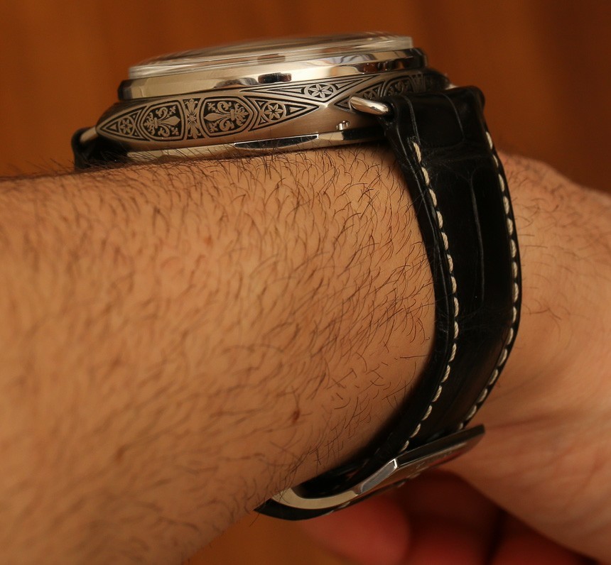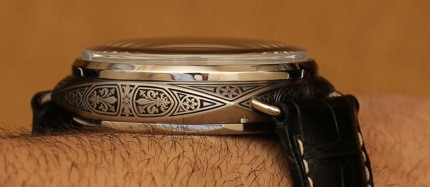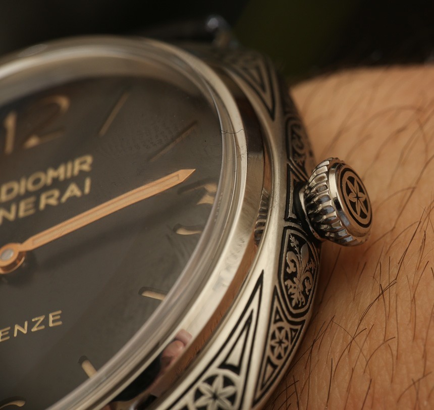 從設(shè)計(jì)的角度來(lái)看,這些雕刻很好地融合了傳統(tǒng)元素,但又很適合這款陽(yáng)剛腕表的設(shè)計(jì)。有一個(gè)花卉圖案 – 但只是一點(diǎn)點(diǎn)。我確實(shí)發(fā)現(xiàn)這些設(shè)計(jì)非常有品位,就像沛納海如何能夠在整個(gè)表盤(pán)表面和表冠上找到空間一樣。我覺(jué)得唯一缺少雕刻的地方是表帶扣。這將是一個(gè)非常好的接觸,可以幫助完善體驗(yàn)。或許沛納海會(huì)在限量版發(fā)售前補(bǔ)救這個(gè)問(wèn)題。