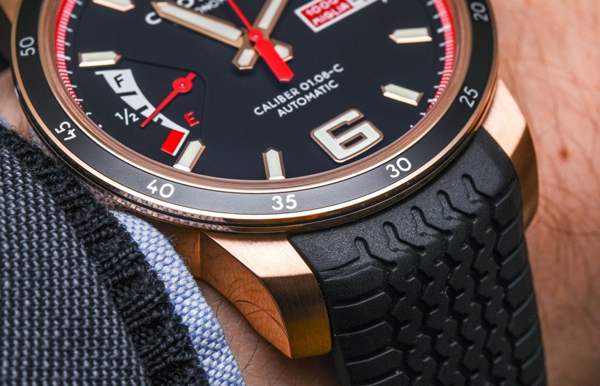 我知道有些人可能不完全喜歡這款手表的設計,但在我看來,蕭邦再次將有趣的賽車主題與精致的風格結合在一起,可以日常佩戴。Chopard Mille Miglia GTS Power Control 和 Automatic 的表殼寬 43 毫米,而計時碼表的表殼寬 44 毫米。我們終于也有了 100 米的防水性能。橡膠表帶看起來有點新,并且本著蕭邦 Mille Miglia 系列的精神,具有 1960 年代鄧祿普輪胎的質感。