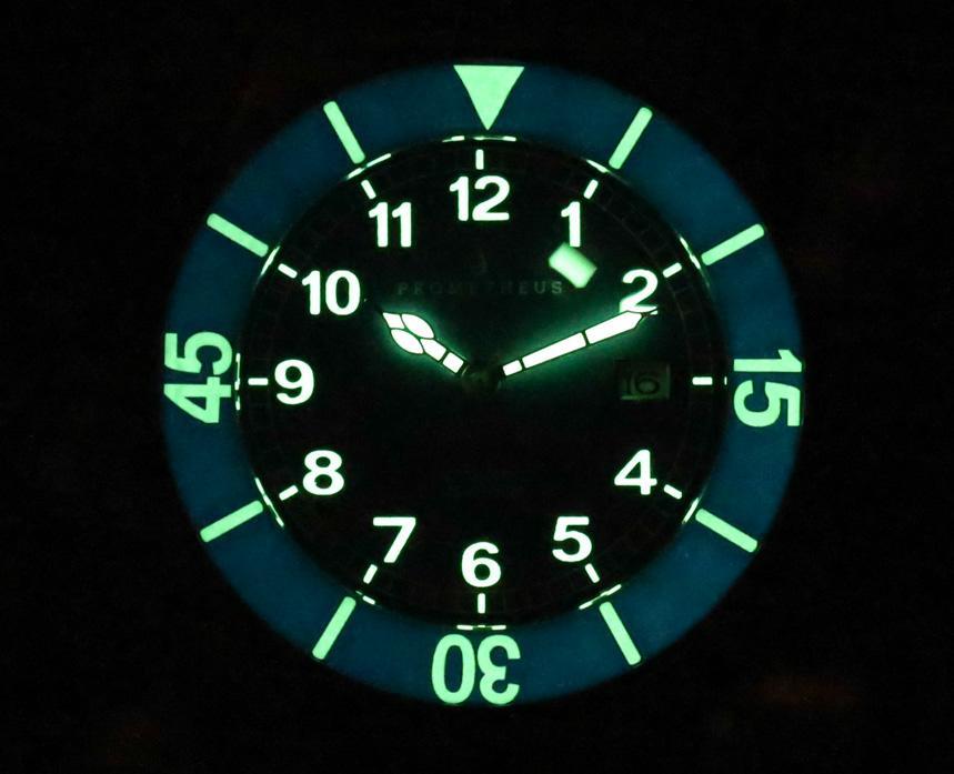 從設(shè)計(jì)的角度來看,Sailfish 的表盤是一種介于船上甲板時(shí)鐘和潛水表之間的混合物。這種組合很有趣,而且易讀性很強(qiáng),但它缺少了有時(shí)從工具表中獲得的性感。話雖如此,表盤并沒有真正打破規(guī)則,因?yàn)樗闹羔槾笮『线m,發(fā)光量也很大。正如您在上面的發(fā)光照片中看到的那樣,Prometheus Sailfish 表盤令人印象深刻。廣告留言廣告信息結(jié)束