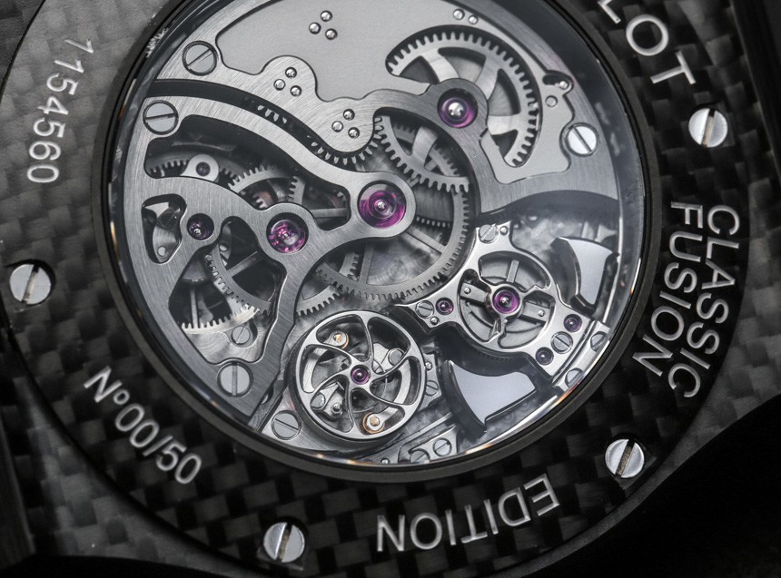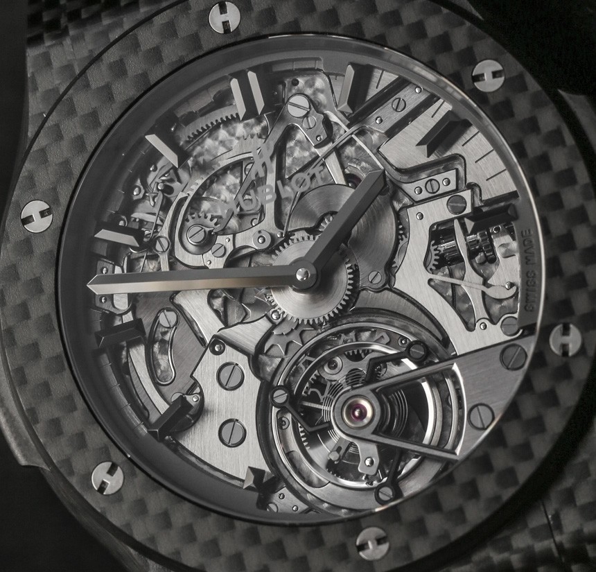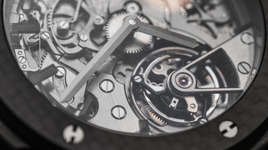 內部制造的 HUB 8001 機芯是手動上弦的,具有 5 天的動力儲存,以 3Hz 運行(我相信)。Hublot 實際上聲稱它有一個“雙重大教堂鐘聲”,可能是因為它有兩個音簧。該機芯由 319 個零件進一步生產——對于這樣的機芯來說效率相對較高。