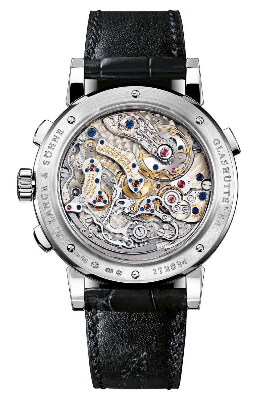 腕表內(nèi)部搭載德國格拉蘇蒂自產(chǎn)朗格L952.1手動上鏈機(jī)芯。共有 556 個手工完成的零件,透過表殼后部的藍(lán)寶石水晶玻璃窺視一下,有點(diǎn)像手表色情天堂,沒有人能像 A. Lange & S?hne 那樣使機(jī)芯流行起來。該機(jī)芯以其 18,000 bph 小時的頻率非常經(jīng)典,與更現(xiàn)代的東西相比。
