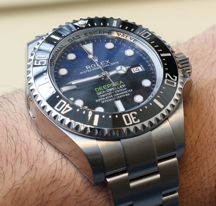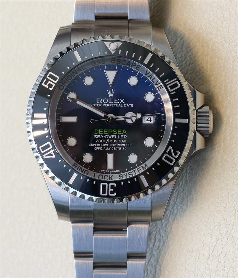讓我們先談談新的 D-Blue 表盤本身。如您所知,表盤的設計旨在模仿詹姆斯·卡梅隆 (James Cameron) 在2012 年的深海挑戰者號潛水任務中的航行(此處討論)。表盤的藍色到黑色漸變類似于海水,當你越深入時海水會變黑,因為陽光只能穿透這么遠。“DEEPSEA”標簽的綠色與深海挑戰者潛水器的顏色相同。詹姆斯·卡梅隆 (James Cameron) 本人是一位狂熱的手表愛好者,并且有一段時間一直是勞力士 (Rolex) 的忠實擁護者。他的主要手表似乎是勞力士深海。廣告留言廣告信息結束