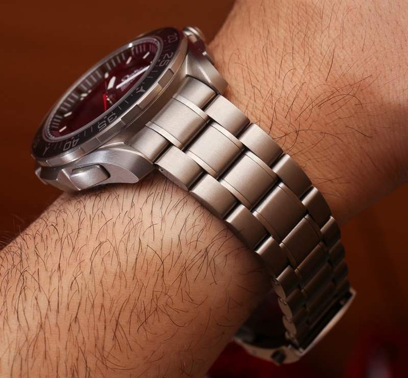 X-33 Skywalker 采用 2 級鈦制成,寬 45 毫米,是第三代 X-33,其大小和尺寸幾乎與十多年前的第二代型號相同。為什么選擇 2 級鈦?這是個好問題。2 級鈦的色調比 5 級更深、更灰——這通常是更高端手表的默認設置。我不是材料專家,無法對所有差異發表評論,但我知道 5 級可以更好地保持拋光效果。事實上,X-33 Skywalker 手鐲上使用了一點 5 級鈦作為中心鏈節的拋光面。
