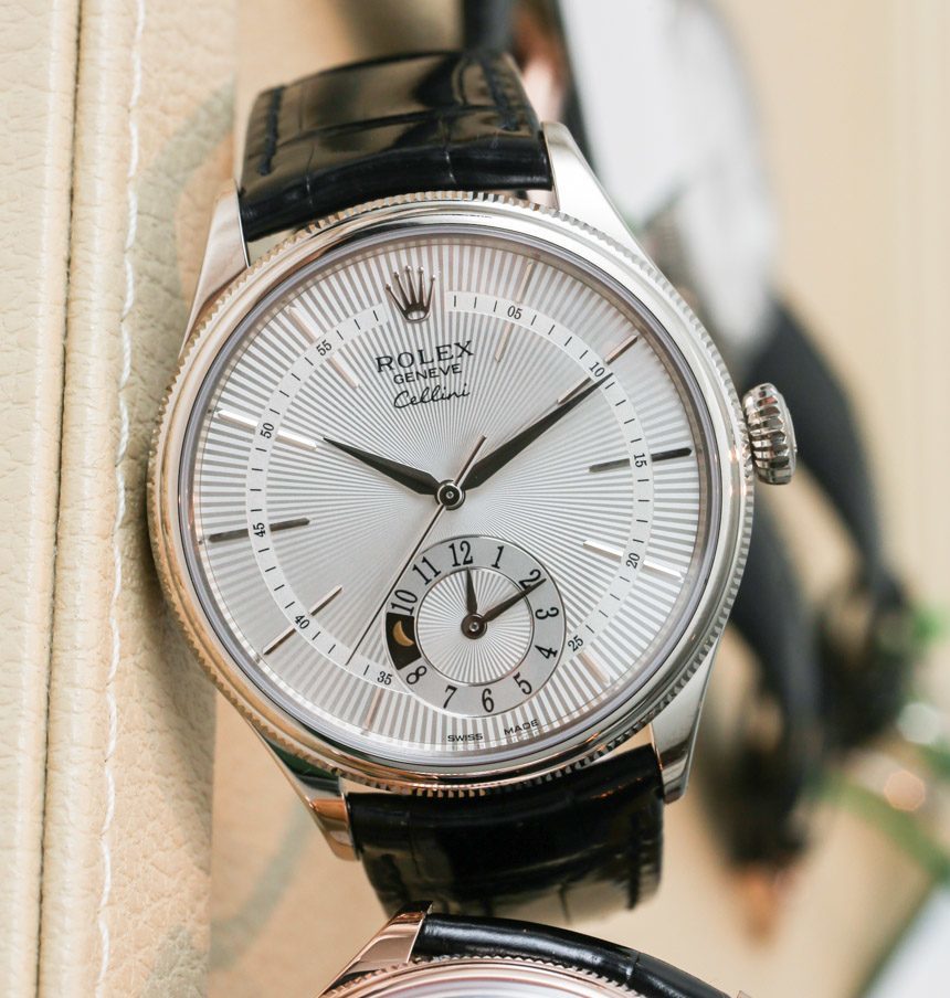 在其他方面,這是勞力士所缺少的主流、纖薄、經典的時計。最基本的版本是 Cellini Time,只有時間,但對我來說最有趣的版本是 Rolex Cellini Date 和這款 Rolex Cellini Dual Time,因為它們添加了勞力士在其他型號中不提供的元素。正如許多勞力士手表常見的那樣,Cellini 的底蓋沒有任何文字,在這種情況下,以經典的形式進行了圓形和拋光處理。