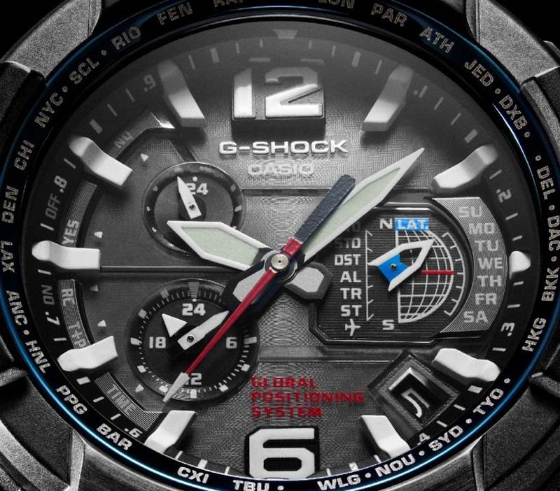 表盤具有一目了然的兩個時區、AM/PM 指示器、星期指示器和日期。GPW1000 似乎還包括各種世界時間和旅行功能,以及定時器和鬧鐘。GPS 系統似乎還會指示您位于北半球還是南半球。