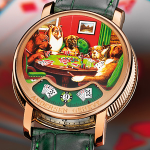 眾所周知,安德森·日內瓦可以根據畫作所在的部分完全定制這款手表。對圖像有更好的想法?他們可以為你把它放在那里。就問吧。還有哪些動物在玩撲克?
