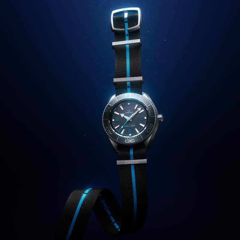 真正達到極限下潛深度的,當然非海洋宇宙腕表45.5毫米至臻天文臺 Ultra Deep?O MEGASTEEL 搭配橡膠表帶款莫屬,品牌在真實的海洋環境中對這款表進行測試,其防水深度高達6,000米(20,000英尺),并通過了國際標準化組織(ISO) 6425:2018有關飽和潛水表的認證。值得注意的是它的厚度僅為18.1毫米,重量約170克,完全接近普通日常實用的水平。透過其凸起的拱型藍寶石玻璃表鏡,可以看到亮漆表盤呈現從藍色到黑色的漸變效果,是其它常見的專業潛水表差別不大,也讓許多專業人士心生出將其作為日常用表的念頭。