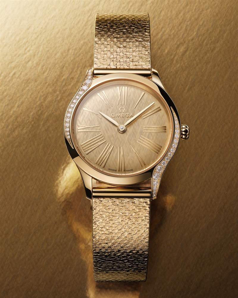 而碟飛系列 MINI名典腕表26毫米石英表?Moonshine 18K金表殼搭配 Moonshine 18K金表鏈款,更加奢華而不失低調:兩側鋪鑲的鉆石,呈現(xiàn)出別致的曲線。表冠也鑲嵌有一顆鉆石,周圍環(huán)繞有紅色液態(tài)陶瓷的花朵圖案。Moonshine 18K金網狀表帶有著織物紋理,緊扣腕上讓它如金手鐲一般熠熠發(fā)光。
